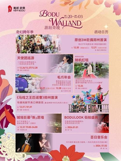 烏鎮(zhèn)戲劇節(jié)熱門劇目《馬戲之王匹諾曹》鄭州首演,帶你闖入夢(mèng)幻童話世界;市民心愿將通過城垣巨幕“新”愿墻映上古老城墻,讓歷史見證美好憧憬;街拍盛典解鎖“巨星待遇”;格萊美級(jí)慢鏡頭定格高光瞬間;百日音樂會(huì)中西交融的旋律流淌街巷;竹藝美陳織就古今漫游動(dòng)線,邀全城市民共赴跨越時(shí)空的迎新之旅。